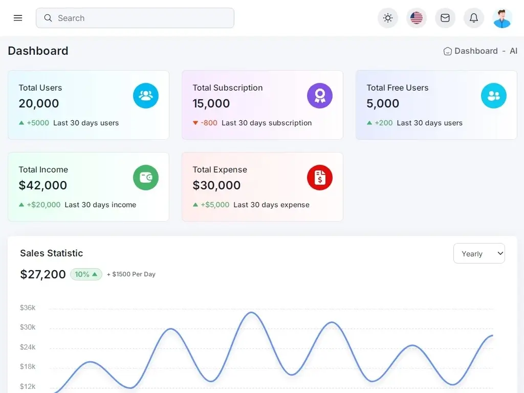 WowDash — шаблон админпанели, объединяющий поддержку разных фреймворков и обширный набор готовых решений для различных отраслей. В пакет входят версии на Tailwind CSS, Bootstrap 5, React + Next.js, Laravel, Django, Vue, ASP.NET и других технологиях, что позволяет легко адаптировать проект под любую рабочую среду. В составе представлено множество демо-панелей: для AI-сервисов, CRM-систем, eCommerce, криптоплатформ, образовательных проектов, медицины, финансов, аналитики, NFT-направлений, маркетинга, HR-задач, недвижимости и других сфер.
