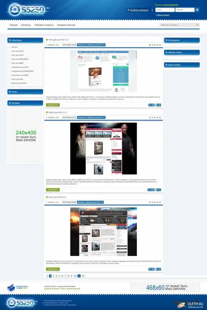 Шаблон: Новостной / Синие / Dle 19.1